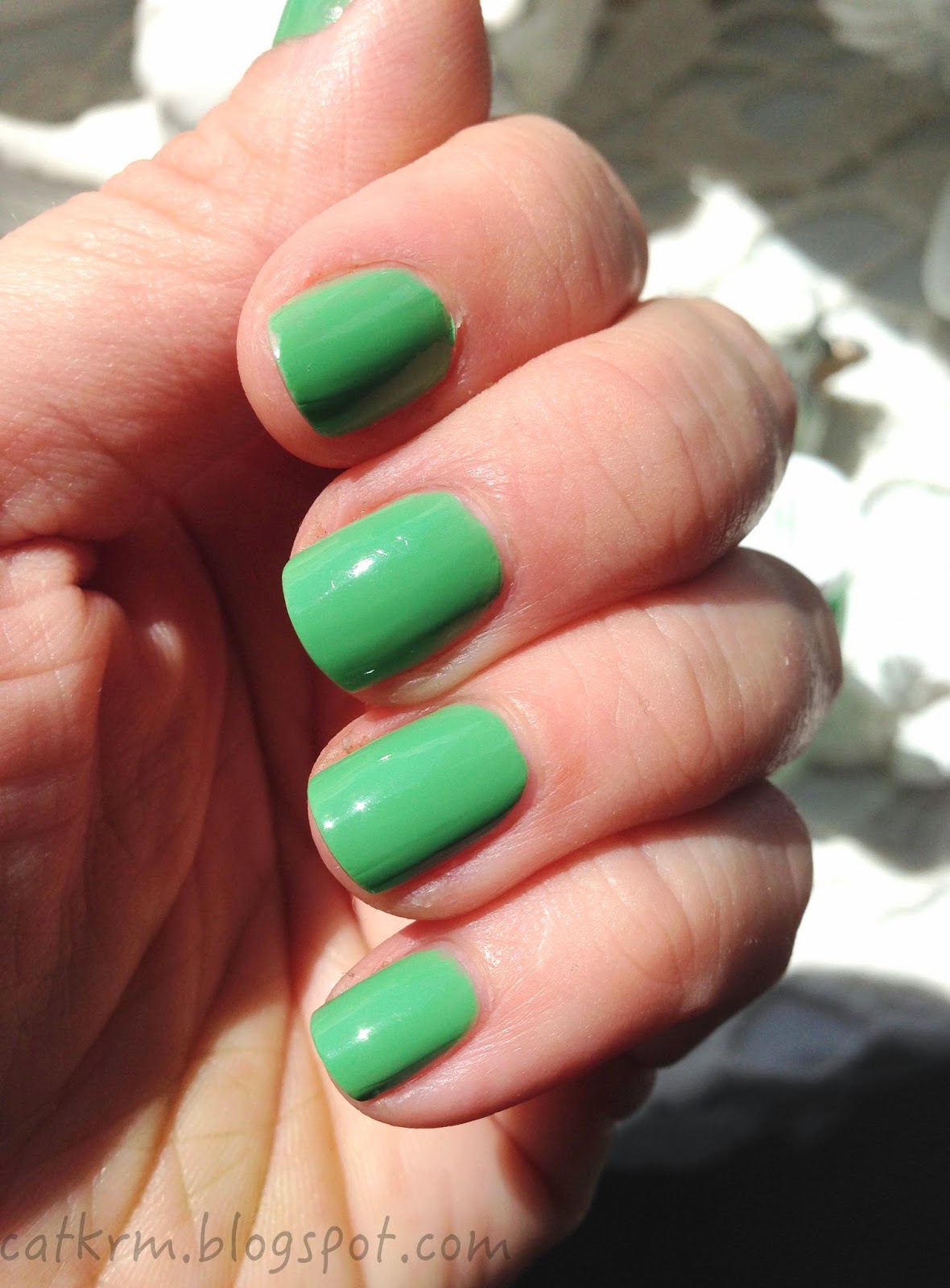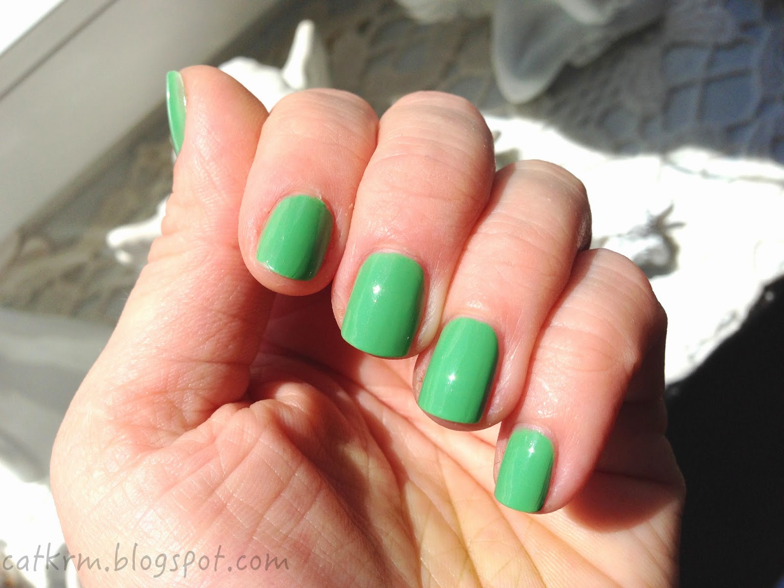 Zielony lakier do paznokci. Taka wiosenna liściowa zieleń. Zwyczajna, ale ładna i miła dla oka. Bardzo rzadko spotykane zjawisko w moich kosmetycznych zbiorach. Mam mięty, turkusy i emeraldy. Zwyczajnej zieleni jeszcze nie miałam.
