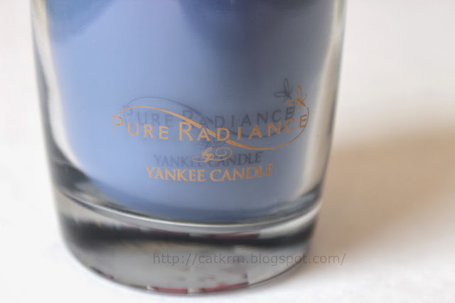 Niebieska świeca z kolekcji ‘pure radiance’ jest mała. Zapach nazywa się ‘denim’ i nie potrafię go do niczego porównać 😉