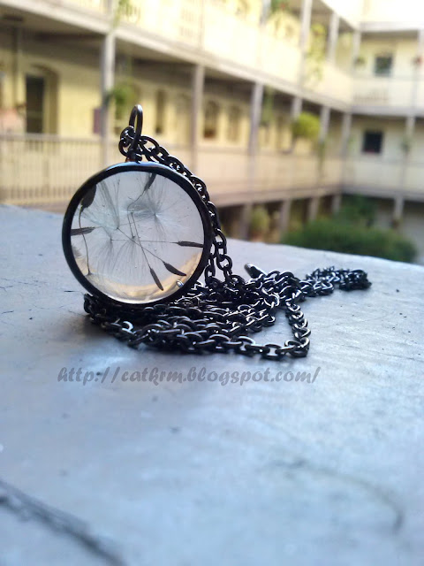 Dzisiaj przyszła przesyłka z naszyjnikiem, w którym zatopione są nasionka dmuchawca/mlecza/mniszka lekarskiego ^^